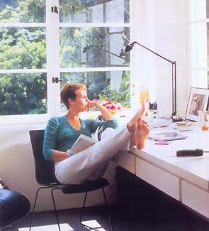 Returning to the story about her friend Rick Frank, she continues: "One month after Rick's death, I began to attend the L.A. AIDS Walk, and continue to participate every year. [She also does the New York AIDS Walk.] At that first Los Angeles event I went to, I said: 'I'm embarrassed that it took my dear, dear friend to die three weeks ago for me to show up here for the first time. I'm ashamed of myself." In my livingroom, Jamie takes a sip of water, then sits back into the couch, and goes on: "Every year, in my opening remarks I try to talk about activism. Obviously last year, which was an election year, my rallying cry was, 'We are not satisfied.' Clearly, the Bush administration has an opportunity but they aren't taking advantage of it. They could not only reach out and put their money toward research and funding but reach out to the gay populatoin in America. They could make a connection and say, 'We may be on an opposite political slant, but we're not just cold-hearted picks....'"